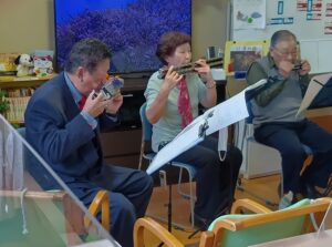 ハーモニカ演奏&合唱(デイサービスたか音の杜) 2025.11.12 本日は ボランティアの ハーモニカふたわ さんが 来てくださいました。 演奏が始まると皆さん真剣に耳を傾け 素敵なハーモニーにうっとり ハーモニカの音色にあわせ美しい声で合唱♪ 昔を思い出し涙を浮かべる方も こんなに大きなハーモニカもあってビックリ! 楽しいトークも盛り込まれ、あっという間の1時間でした。 楽しかった、また来て欲しいと、皆様からのお声を沢山いただきました。 ぜひまたお越しください(^^♪ 福祉フェスティバル♪(たか音の杜) 前の記事 つぼい愛の郷 防災計画 次の記事