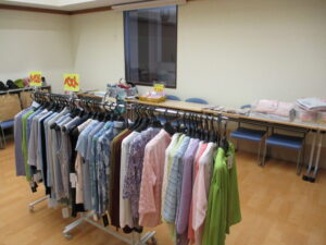 会場には、下着やパジャマや春らしい綺麗な色のトップスなど、さまざまな商品が取り揃えられ、