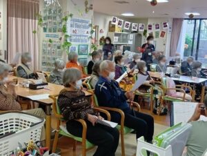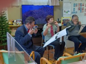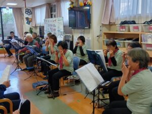ハーモニカ演奏&合唱(デイサービスたか音の杜) 2025.11.12 本日は ボランティアの ハーモニカふたわ さんが 来てくださいました。 演奏が始まると皆さん真剣に耳を傾け 素敵なハーモニーにうっとり ハーモニカの音色にあわせ美しい声で合唱♪ 昔を思い出し涙を浮かべる方も こんなに大きなハーモニカもあってビックリ! 楽しいトークも盛り込まれ、あっという間の1時間でした。 楽しかった、また来て欲しいと、皆様からのお声を沢山いただきました。 ぜひまたお越しください(^^♪ 福祉フェスティバル♪(たか音の杜) 前の記事 つぼい愛の郷 防災計画 次の記事