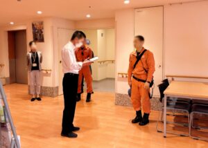 消防への通報、避難誘導までの一連の流れを確認いたしました。